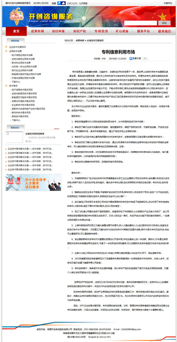 湘潭市開(kāi)創(chuàng)咨詢服務(wù)有限公司網(wǎng)站文章終顯頁(yè)效果圖